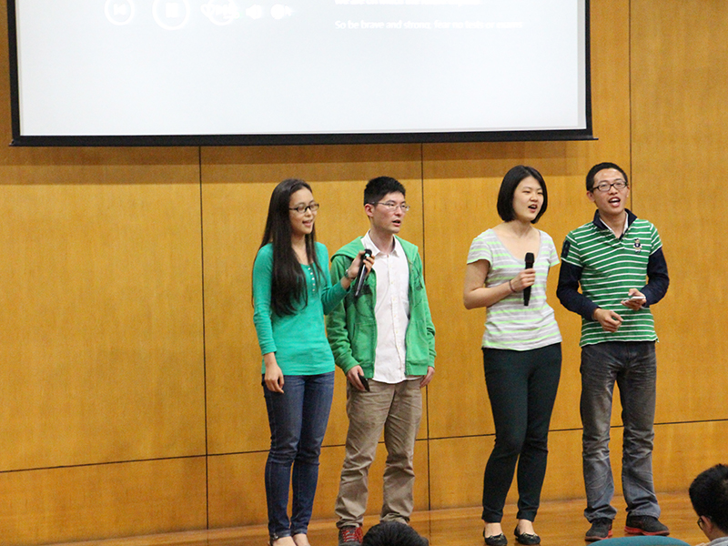 这场积蓄依旧的战斗终于打响。经过初赛,从26只队伍中脱颖而出的六强胸有成竹地站在了今天的决赛场上。在第一个展示环节中,每支队伍就充分展现了他们各自的风采,无论是必胜客队,666666队、We ,powerword队和风凡闫锋队独具特色的情景剧,花椒队堪比原声的英文配音秀,还是2468队独具匠心的英文改编版校歌,都以其卓然的魅力引得观众的阵阵掌声。