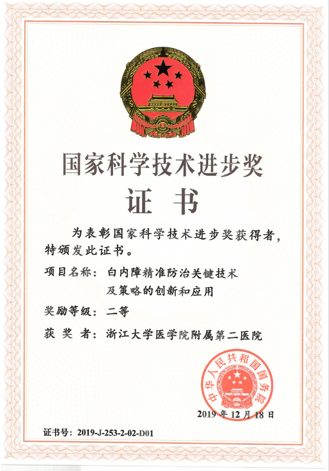 2020年1月10日,中共中央、国务院在北京隆重举行国家科学技术奖励大会。此次奖励大会上, 浙大二院"白内障精准防治关...